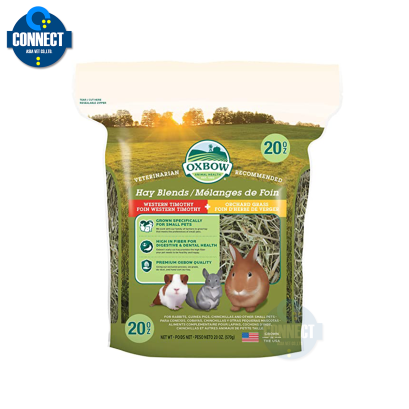 Hay Blends – Western Timothy + Orchard Grass Hay – (หญ้าผสม) หญ้าทิโมธี + หญ้าออชาร์ด เป็นการผสมผสานระหว่าง หญ้าทิโมธี เเละ หญ้าออฉาด ทำให้สัตว์เลี้ยงได้รับสารอาหารที่หลากหลาย และยังช่วยลดแนวโน้มอาการช่างเลือกอาหารของสัตว์เลี้ยง กากอาหารสูง, โปรตีนต่ำ, ไขมันต่ำ เหมาะสำหรับ สัตว์ฟันเเทะโตเต็มวัยตั้งแต่ 6 เดือนขึ้นไป